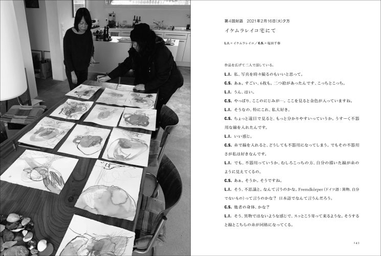 二人は、ロックダウン状態が続く中、拠点とするドイツのベルリンで、お互いの家やアトリエを定期的に行き来し、対話を重ねてきました。本書には、その5回に渡る対話をまとめた「対話集」と二人展「手の中に抱く宇宙」出品作を所収しています。
