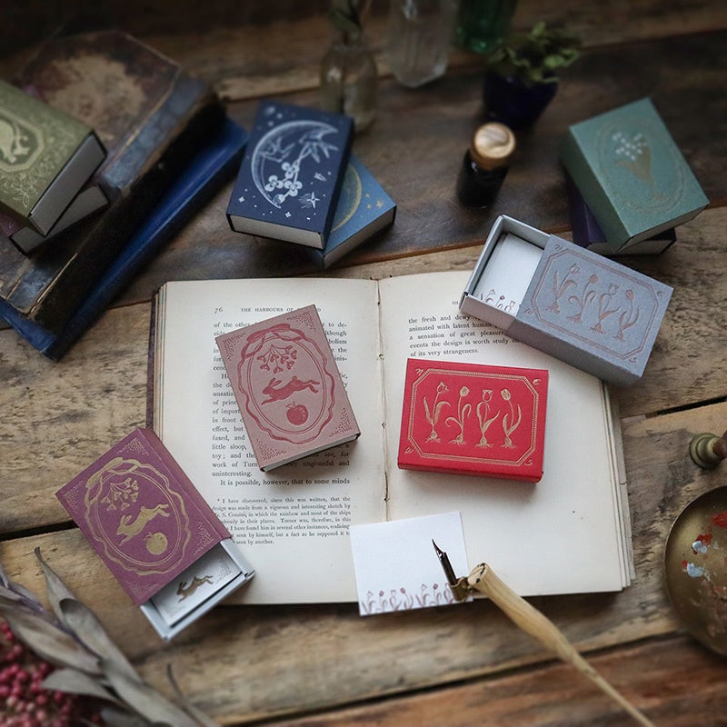 「記憶に残る印刷物」を合言葉に、神戸の工場で様々な印刷技法と高い技術と豊富なアイディアで、ときめきを形にする啓文社印刷。活版印刷ならではの凸凹の風合いと、愛らしいデザインを楽しめる活版マッチ箱。箱の中にはメモが入っています。