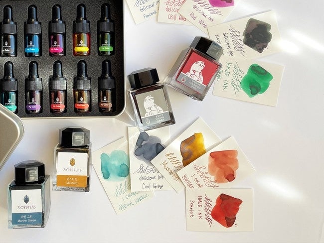 京都では初の販売となる、鮮やかな色味の変化やラメ入りインクを提案する韓国発のインクブランド「Dominant Industry」(ドミナント インダストリー)と「3・OYSTERS」(スリー オイスターズ)もお披露目致します。ラメ入りインクや香り付きのインクなど、韓国の名所や自然をモチーフにした全59色の中から特に人気の色を選出しました。