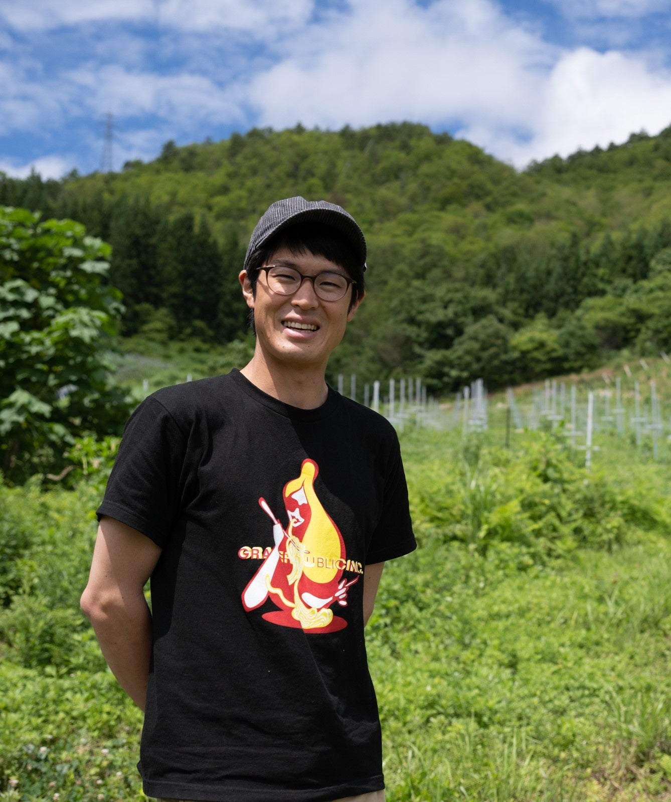 1989年生まれ兵庫県神戸市出身。調理師学校を卒業後、イタリアンレストランにて料理とワインを学ぶ。2014年に単身、イタリアのボローニャに渡り、ナチュラルワインと出会う。その後オーストラリアで経験を積み、ニュージーランドのネルソンの「Kindeli」アレックスクレイグヘッド氏のもとで、ナチュラルワインを学び、アレックスの紹介でグレープリパブリックにジョインした。