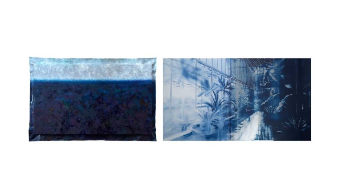 左:渡邉太地《Space#37》Oil on canvas/W1780×H1175mm/2025 右:《liminal paint_Crystal Palace#2》 W1167×H657×D50mm/2025
