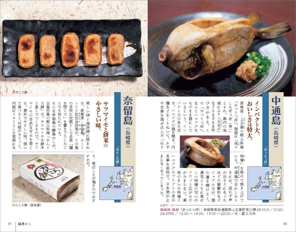 第1章「離島めし」では、東西南北の島々で味わったバラエティ豊かな島の味を紹介。北は利尻島から南は波照間島まで、地域に根差した郷土料理や島ならではの美味・珍味が満載です。